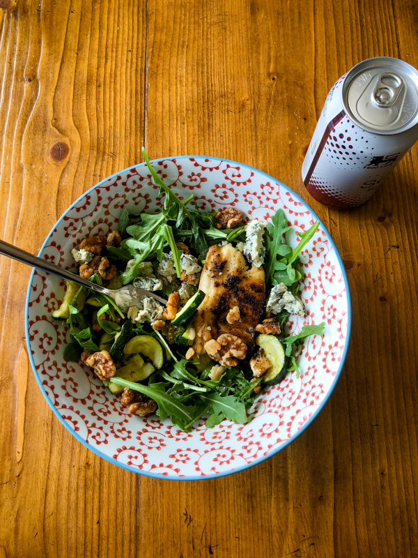 Lunch break was a big arugula salad topped with some leftover fish from Tuesday night’s dinner. Plus candied walnuts and bleu d’auvergne – the absolute best salad topper combo! Oh, there was some leftover zucchini in there too.