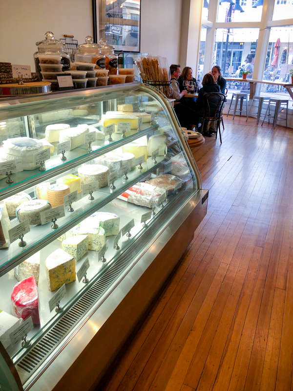 Sarah had to jet off to her kids and Thomas was off at volleyball, so I had a little solo date night. I went to Tilman’s, a new-ish cafe serving wine, cheese, salads, snacks, and sandwiches. The menu looked so good! I wish I had gotten a shot from the outside looking in because the decor is very cute, and there is a pretty marble bar in the back.