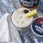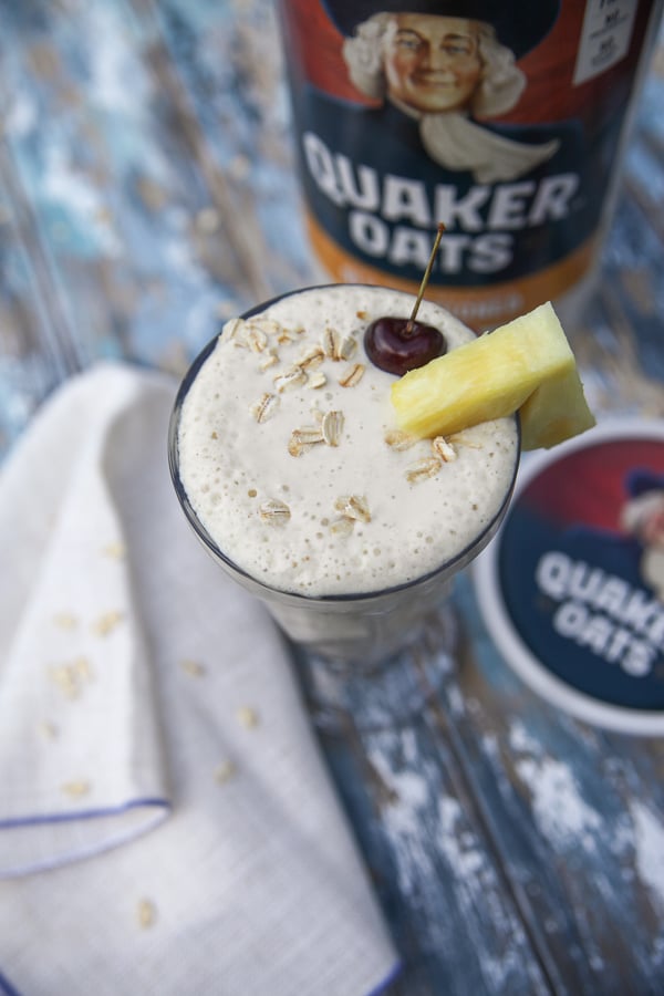 You guys know that oats are so incredibly versatile, and if you haven’t put them in a smoothie yet you are missing out! The texture is superb. I often make two smoothies at once and have one later on for a snack or for breakfast the next day. Just like when you make overnight oats, the oats soak up the milk, and an oat-based smoothie will thicken over time and is fun to eat with a spoon! A 1/2 cup of Quaker Oats also adds 4 grams of fiber, so in addition to taste and texture you’re getting nutrition too.